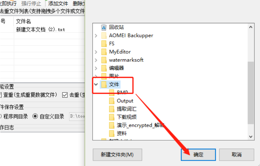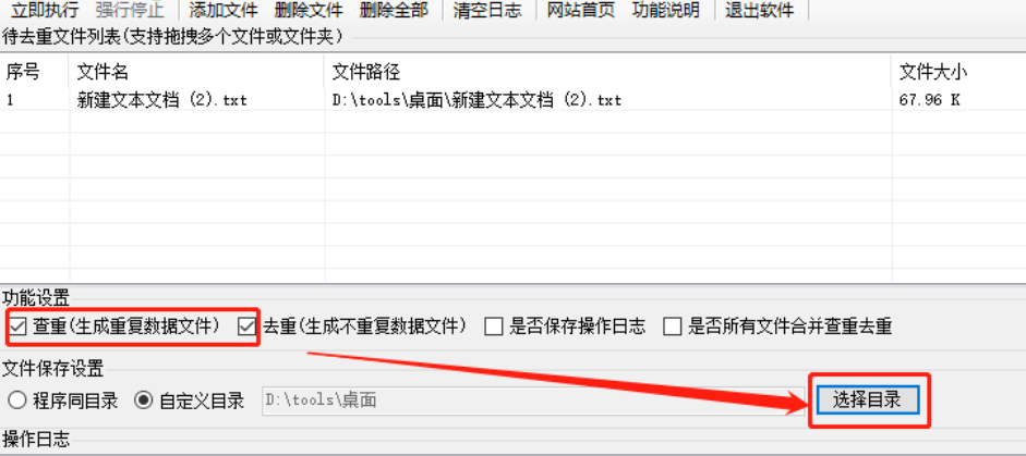 4.点击勾选上查重和去重功能之后,我们点击右边的选择目录这个功能按钮,可以更改文件去重之后的储存位置。