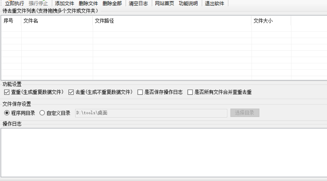 6.最后一步我们选择好文件的输出储存路径之后,点击界面左上角的立即执行这个功能按钮就可以开始执行查重去重操作了。