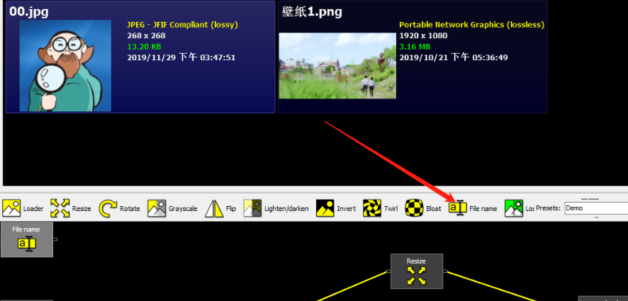 3.点击打开按钮之后选择的图片就成功添加到界面中了,然后我们在功能界面中找到File name这个功能按钮,找到之后点击它。
