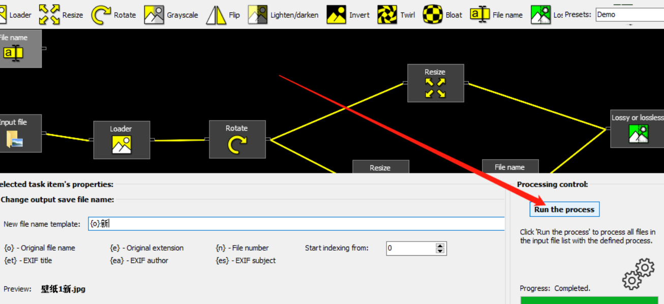 6.最后一步我们根据自己的需求来设置好重命名的规则之后,点击界面下方的Run the process这个功能按钮就可以开始进行批量重命名操作了。