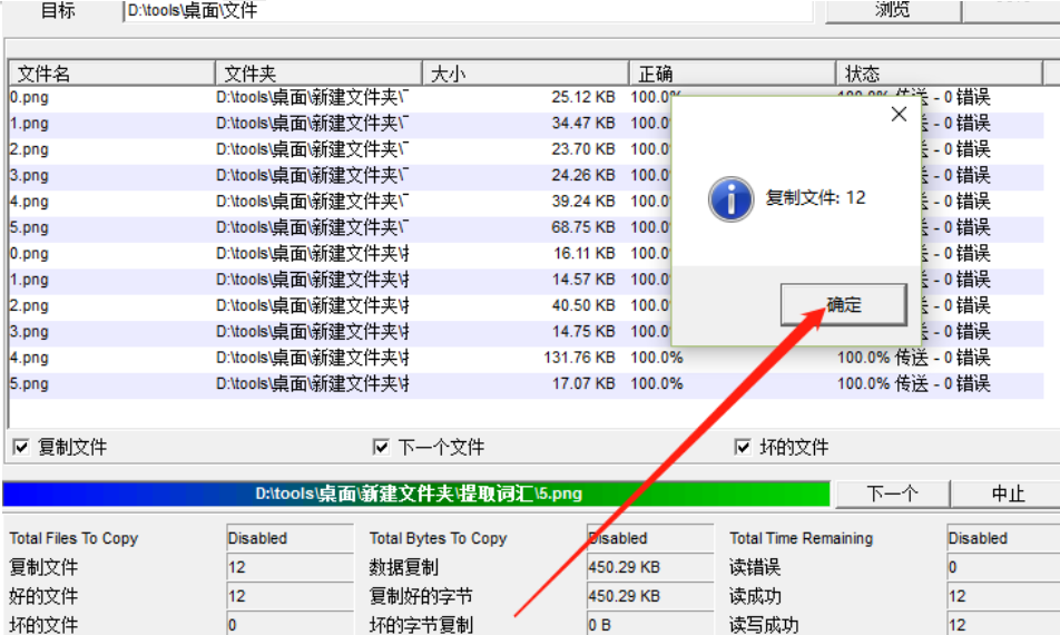 5.等到软件修复好文件之后会自动复制到我们选择的目标文件夹中,然后我们就可以看到软件返回的复制文件结果了,如下图中所示。