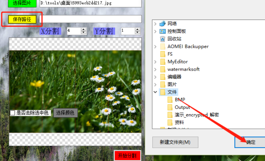 3.点击打开按钮之后图片就成功添加进来了,然后我们点击保存路径这个按钮可以修改文件分割之后的输出路径。