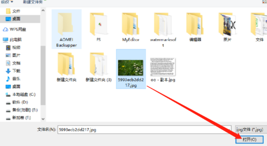 2.点击选择图片按钮之后接下来在出现的选择文件界面中,我们选中想要分割的图片文件之后点击右下角的打开按钮。