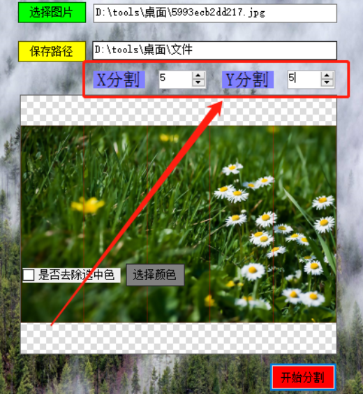 4.设置好输出路径之后下一步在界面中可以设置X分割和Y分割的数值,根据自己的需求来选择设置就可以了。