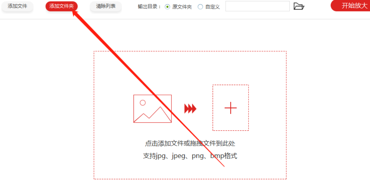 1.首先第一步我们打开软件之后在软件的主界面中点击添加文件夹这个功能按钮,点击之后即可添加需要放大的文件。