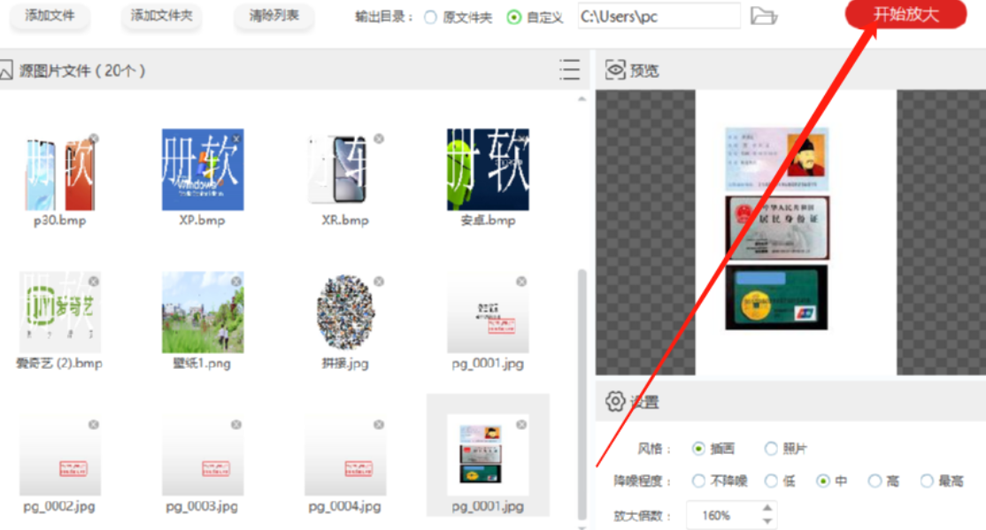 5.设置好文件放大之后的输出路径之后,我们就可以点击界面右上角的开始放大这个功能按钮来开始批量放大图片了。
