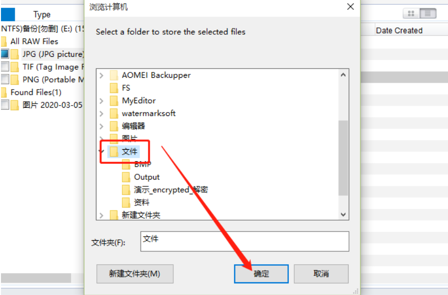 5.点击恢复文件之后会出现一个选择恢复文件储存路径的界面,如下图中所示,我们根据个人的需求选择好文件恢复储存的位置点击确定按钮即可开始恢复。
