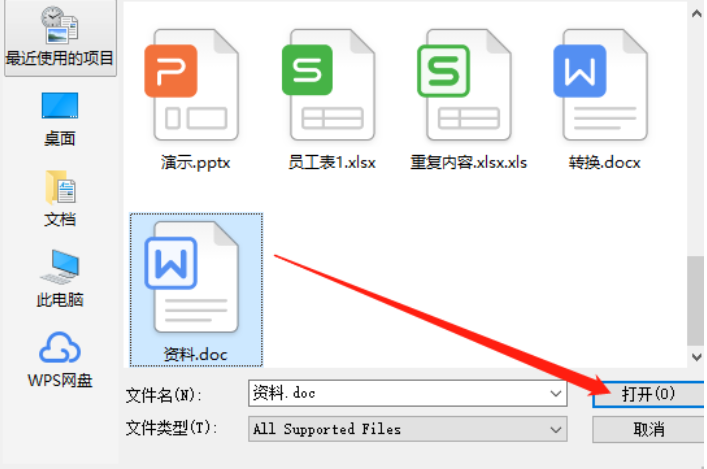 2.点击添加文件按钮之后,下一步就会打开我们选择文件的界面了,在这个界面中我们选中目标文件之后点击打开按钮。