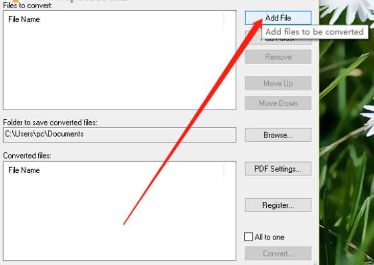 1.首先第一步我们打开软件之后在软件的主界面中点击Add File这个功能按钮,点击这个按钮之后添加要进行转换的Word文件。