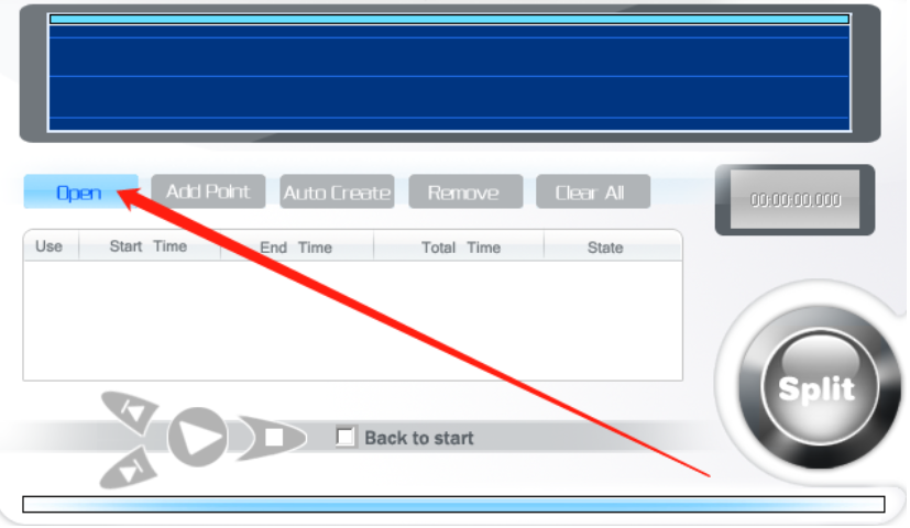 1.首先第一步我们打开软件之后在软件的主界面中点击Open按钮,点击这个按钮之后即可添加需要剪切的MP3音频。