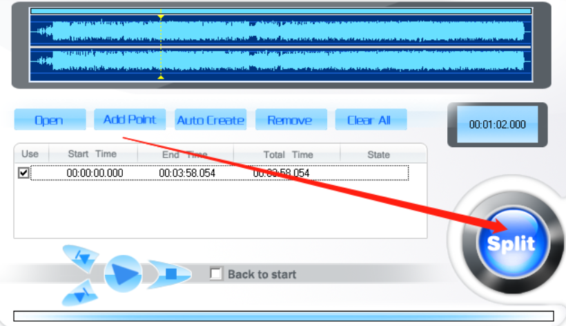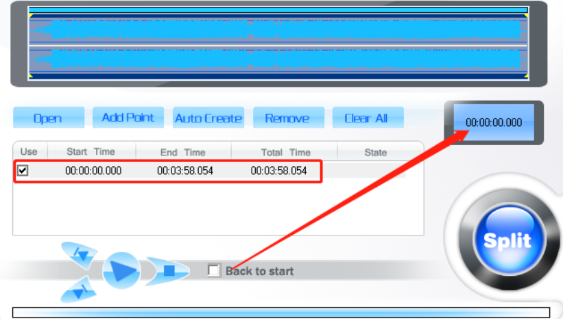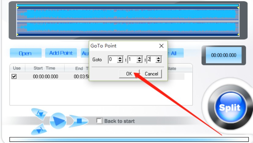 5.点击这个OK按钮之后我们选择的剪切的片段就设置完成了,最后只需要点击界面右下角的Split这个功能按钮即可开始剪切操作。
