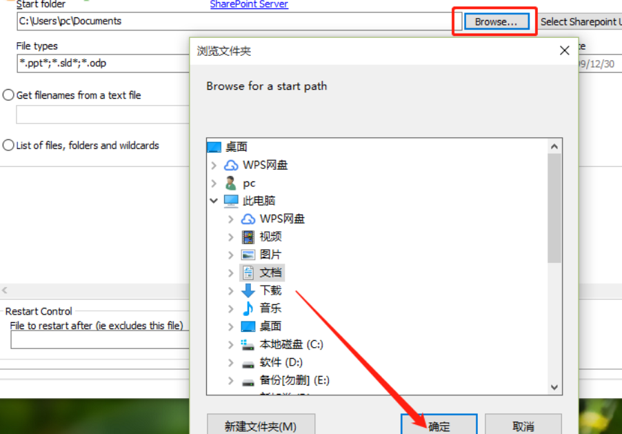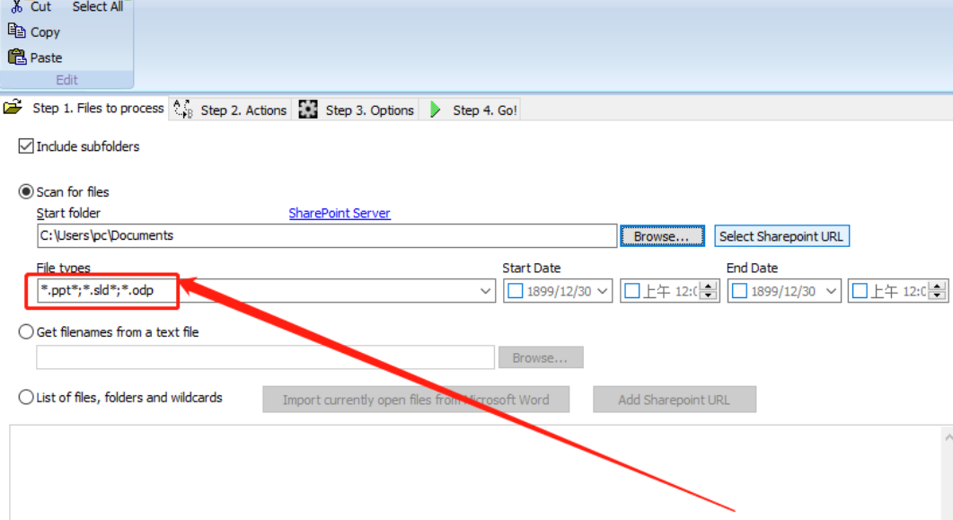 2.选择好文件夹之后,我们在下方的“File type”选项中可以输入查找文件夹中指定类型的文件,然后需要有.ppt后缀的PPT文件才行。