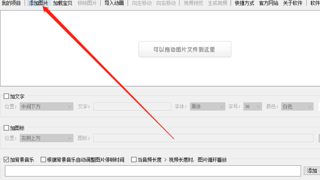 1.首先第一步我们打开软件之后在界面的左上角找到添加图片这个功能按钮,找到添加图片按钮之后点击添加要制作相册的图片。