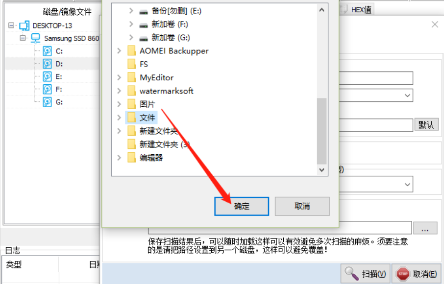 3.点击扫描按钮之后在界面中会出现一个浏览文件夹的界面,我们需要在这个界面中选择保存扫描结果的路径,选择之后点击确定按钮。