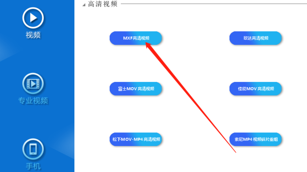 1.首先第一步我们打开软件之后在软件的主界面中点击进入到MXF高清视频这个模块中,然后就进入到恢复MXF视频的功能界面了。
