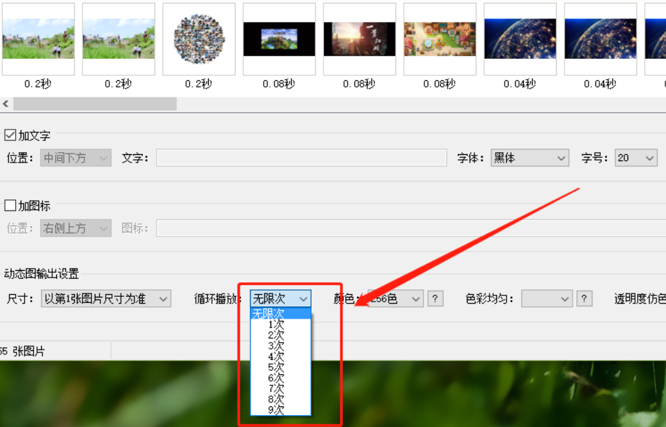 5.另外我们还可以在循环播放这个功能这里,打开下拉列表,选择我们想要设置的循环播放次数,如下图中所示。