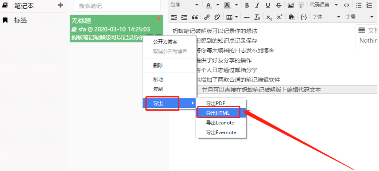 蚂蚁笔记将笔记导出为HTML文件的详细教程