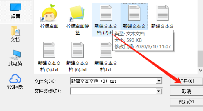 2.点击添加按钮之后就出现一个选择文件的界面了,在这个界面中选中目标TXT文档之后点击右下角的打开按钮。
