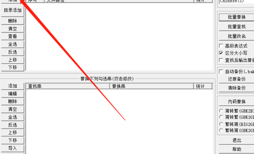 1.首先第一步我们打开软件之后,点击文件模块中的添加按钮,点击这个添加按钮之后即可选择需要替换字符串的文件。