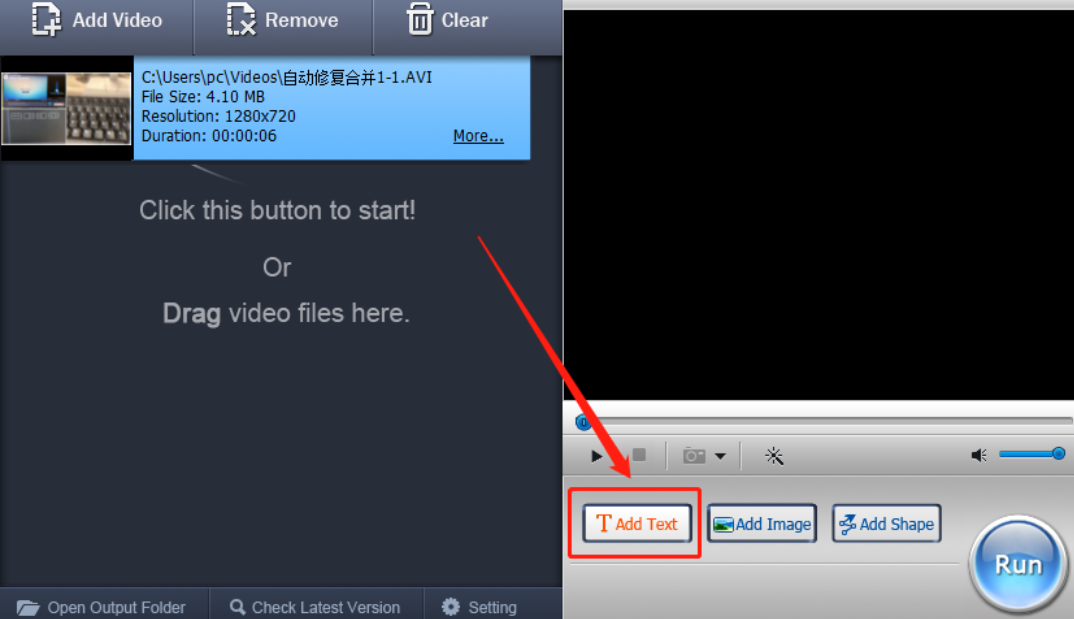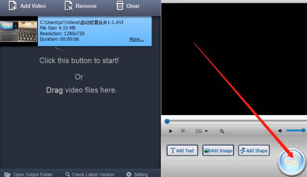 7.点击OK按钮之后回到软件的主界面中,我们点击界面右下角的Run按钮即可开始为视频添加水印的操作。