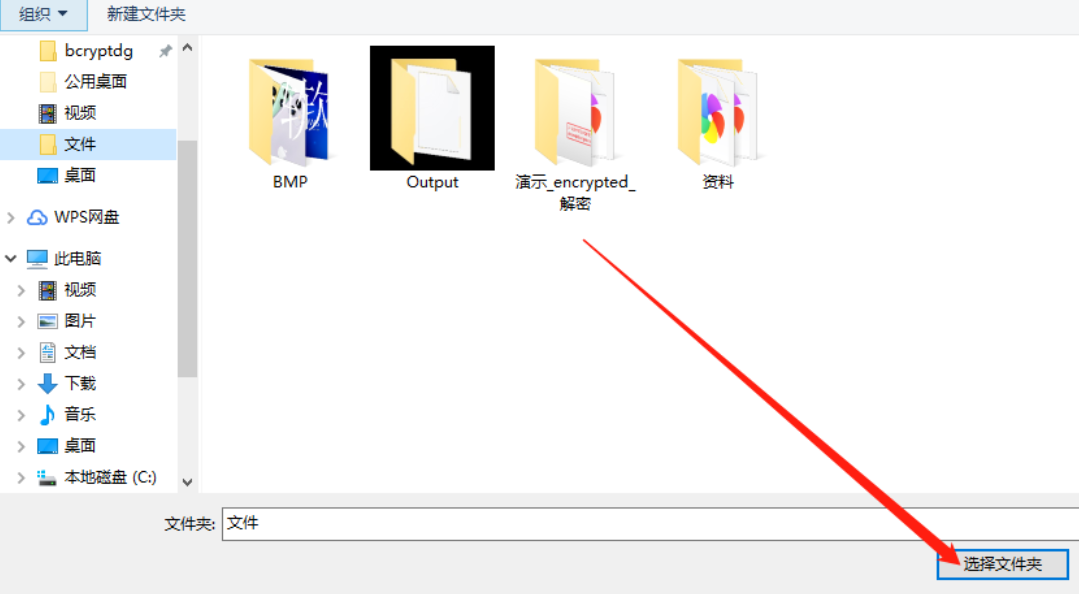 5.点击更改按钮之后我们就可以在出现的界面中选择文件的输出位置了,如下图中所示,选中之后点击右下角的选择文件夹按钮。