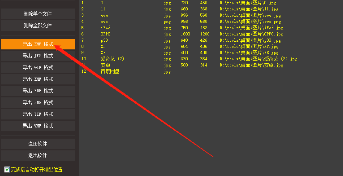 4.紧接着我们下一步点击界面左边的导出BMP格式这个功能选项就可以将选中的这些图片导出为BMP格式的图片了。
