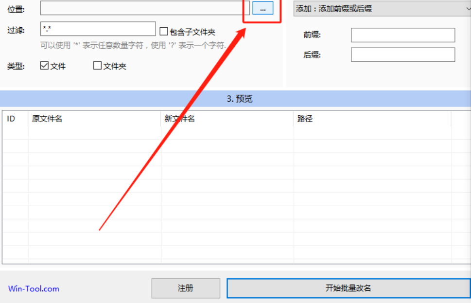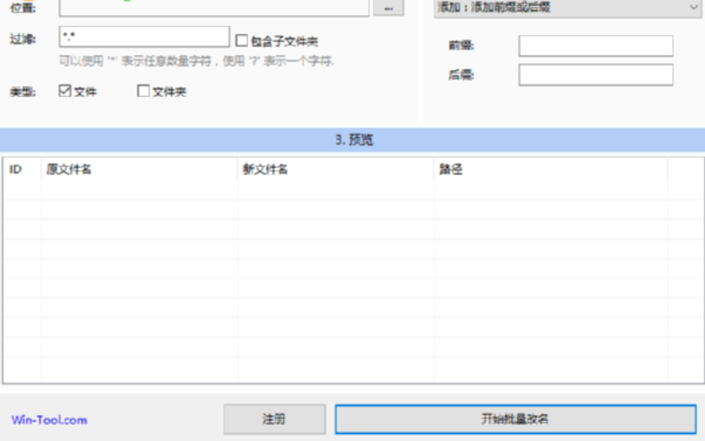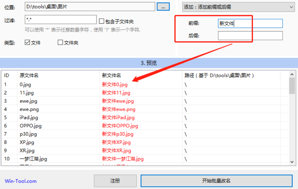 5.点击设置好我们要修改名称的前缀或后缀,并且预览到新名称之后,我们就可以点击界面下方的开始批量改名这个功能来批量修改文件名称了。