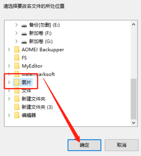 2.点击三点按钮之后紧接着会出现一个选择文件的界面,在这个界面中我们选中要修改名称的文件所在的文件夹,选中之后点击确定按钮。