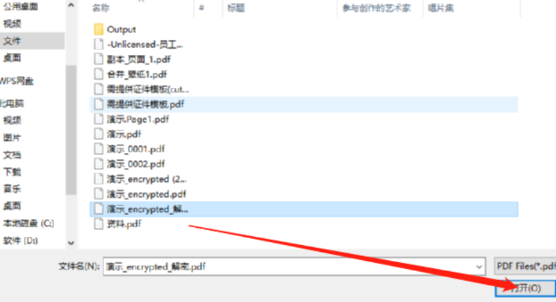 4.点击打开PDF文件按钮之后,紧接着会出现一个选择文件的界面,在这个界面中我们选中目标文件之后点击右下角的打开按钮。