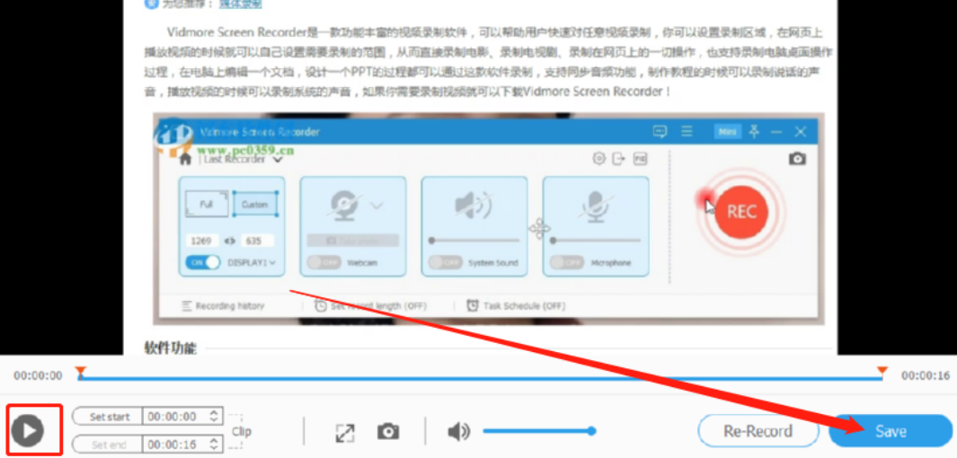5.停止录制之后会自动出现一个预览录制视频的界面,在这个界面中我们点击播放按钮可以看到录制的内容,最后点击右下角的Save按钮即可将录制的视频保存下来。