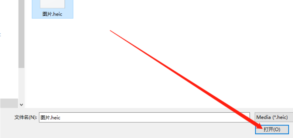 2.点击加号添加按钮之后在出现的界面中可以选择要添加转换的heic图片,选中之后点击右下角的打开按钮。