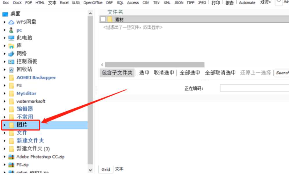 1.首先第一步我们打开软件之后,在界面左边可以看到电脑中的所有文件路径,然后我们找到CSV文件所在的文件夹选中。