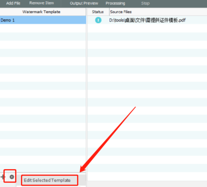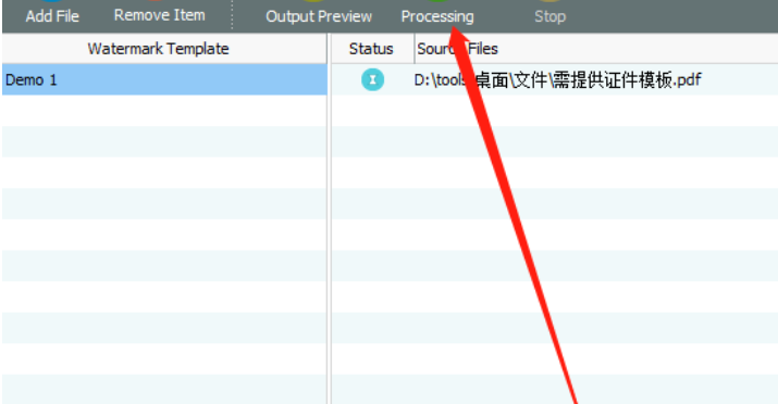 6.最后我们设置好水印效果之后回到软件的主界面,点击界面中的Processing这个功能按钮就可以开始为PDF文件添加水印了。