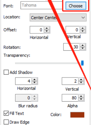 4.点击这个选项之后就会打开编辑水印的界面了,在这个界面中我们选择文字水印,然后输入水印的内容,点击Choose按钮可以对文字的字体字号进行设置。