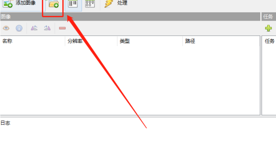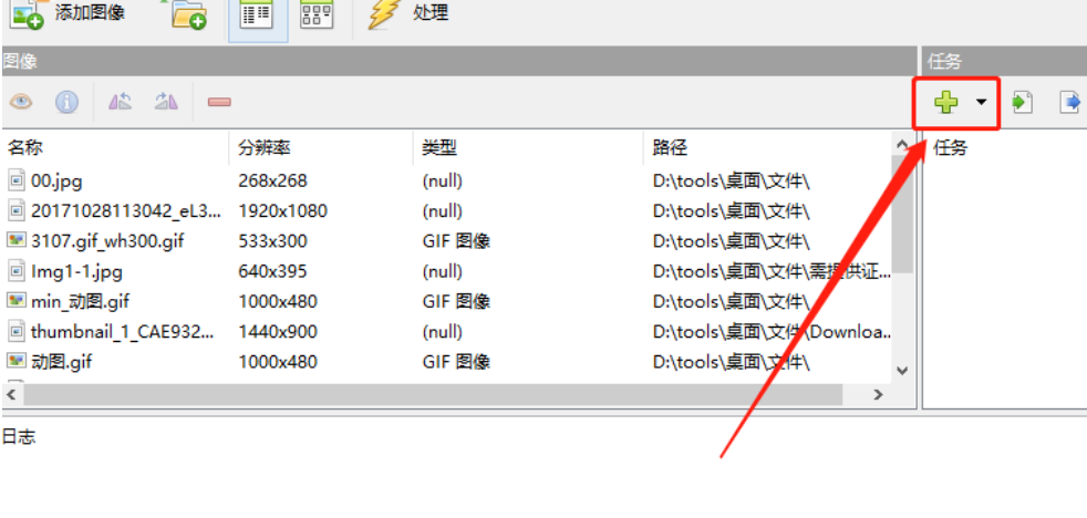 3.选择好文件夹之后软件会自动读取文件夹中的图片文件,读取完成之后会显示图片列表,如下图中所示,然后我们点击任务栏中的加号图标。