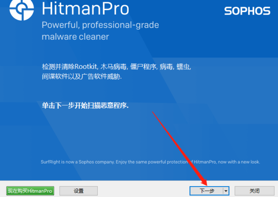 1.首先第一步我们打开软件之后在软件界面的右下角点击下一步按钮,点击之后开始进入到扫描恶意程序的功能界面中。