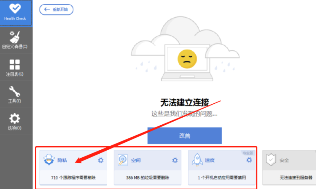5.然后下一步我们回到检查结果的界面点击界面中的改善这个功能按钮就可以对扫描出来的这些数据进行清理。