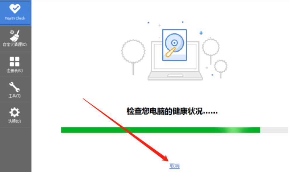 2.点击下一步按钮之后软件就会开始对电脑的一些隐私数据和垃圾文件进行扫描检查了,用户点击取消按钮可以终止扫描。