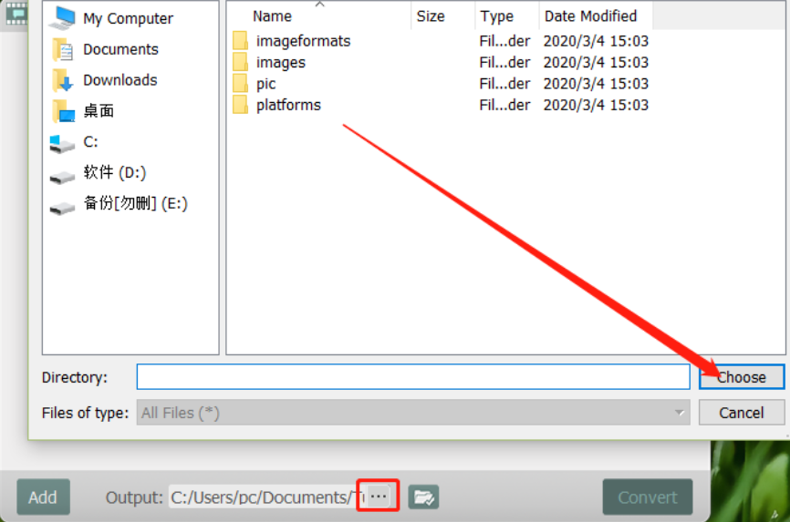 3.下一步我们成功添加视频文件之后,需要点击下方输出按钮旁边的三点按钮,点击之后在出现的界面中可以选择文件的输出储存位置。