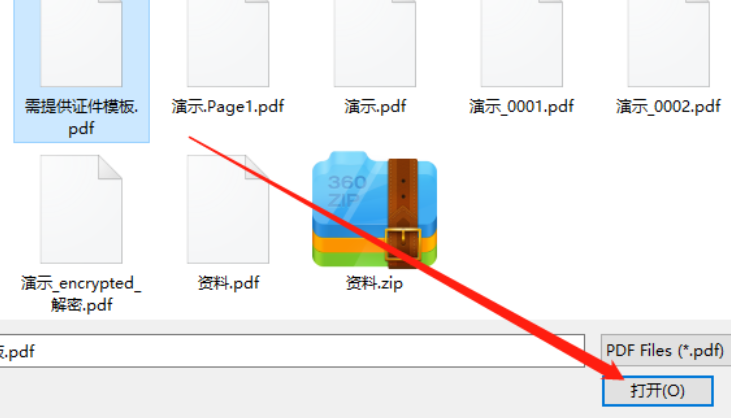 2.点击添加PDF按钮之后紧接着会打开一个选择文件的界面,在这个界面中我们需要选择那个被加密了的PDF文件,选中之后点击打开按钮。