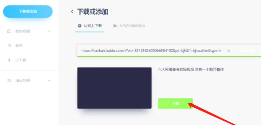 3.等待识别完成之后在界面的下方将会看到识别出来的视频文件,我们点击下载按钮即可开始下载这个视频。