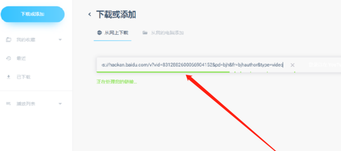 2.切换到下载视频的界面之后,我们将想要下载的网络视频链接复制粘贴到界面的地址栏中,然后软件就会开始识别链接中的视频文件了。