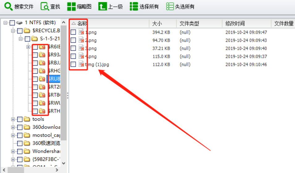 4.等到扫描完成之后我们在界面中就可以看到扫描出来的文件列表了,然后我们打开这些文件列表可以看到其中有带红叉的文件,表示已经被删除。