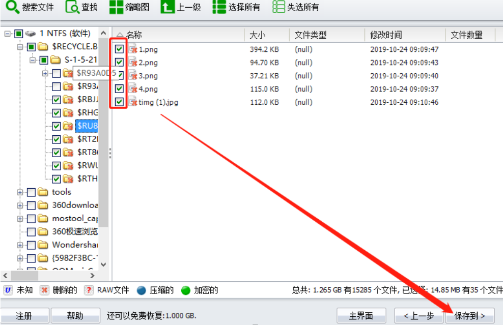 5.最后我们勾选想要恢复的媒体文件之后点击右下角的保存到这个功能按钮,如下图中所示。