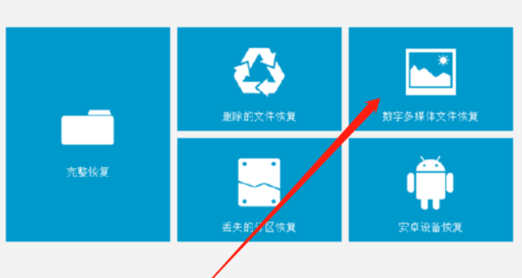 1.首先第一步我们打开软件之后在软件的主界面中点击数字多媒体文件恢复这个功能模块,进入到恢复媒体文件的界面中。