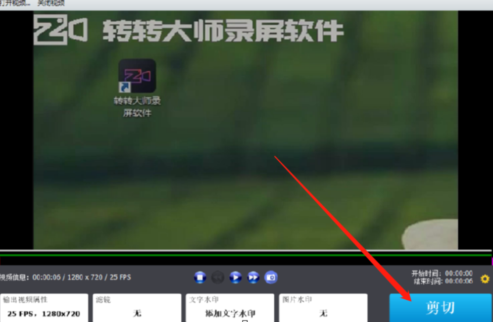 6.最后我们只需要点击界面右下角的剪切按钮就可以将视频导出保存了,导出之后的视频中就会有我们设置好的水印内容。