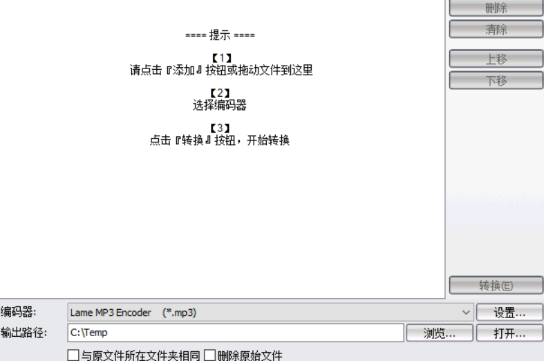 3.点击打开按钮之后MP3文件就选择成功了,下一步是在编码器这个选项中打开下拉列表,然后选择合适的编码器进行转换操作的准备。