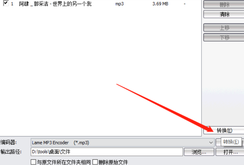 5.最后一步我们在选择好编码器和输出路径之后就可以点击界面右下角的转换按钮来开始转换文件的操作了,等待转换完成即可。