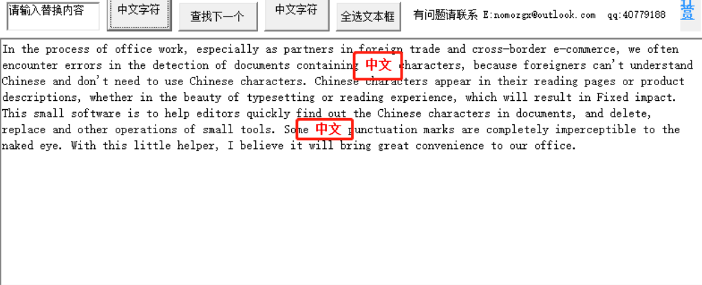 5.最后我们在软件的文档内容显示区域就可以看到查找出来的中文字符了,软件做了红色字体标注,用户能够更加清晰的查看到。