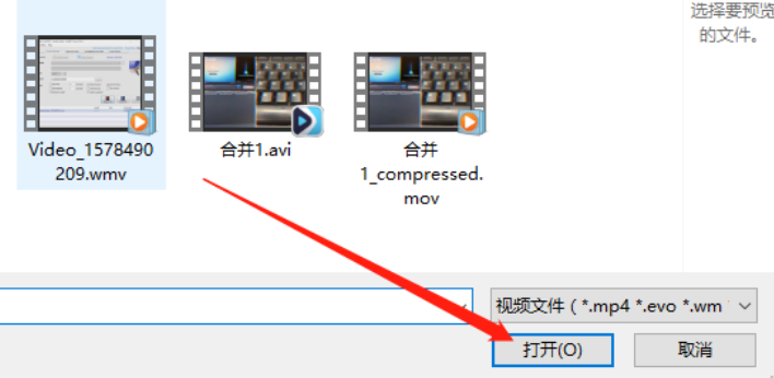 3.点击添加视频文件之后,下一步就会打开一个选择文件的界面了,我们在这个界面中选中要剪切的视频之后点击右下角的打开按钮。